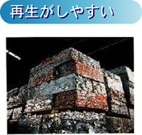 アルミニウム屑を溶解するにあたっても 融点が約660℃と銅や鉄などの主要金属の中では低い方なので少ないエネルギーで行うことができる